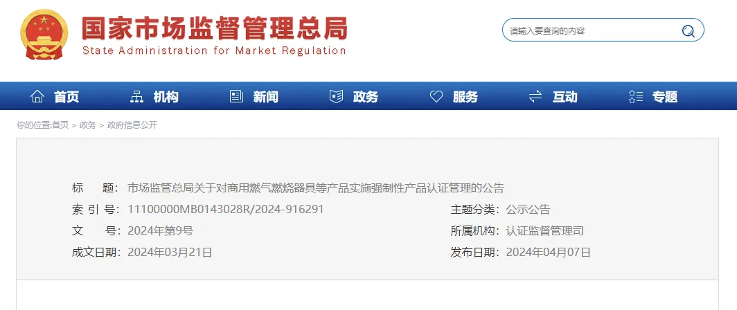 为进一步加强产品质量安全监管工作,根据《中华人民共和国认证认可条例》有关规定,市场监管总局决定对商用燃气燃烧器具等产品实施强制性产品认证(以下称CCC认证)管理,对低压元器件恢复CCC认证第三方评价方式。现将有关要求公告如下: