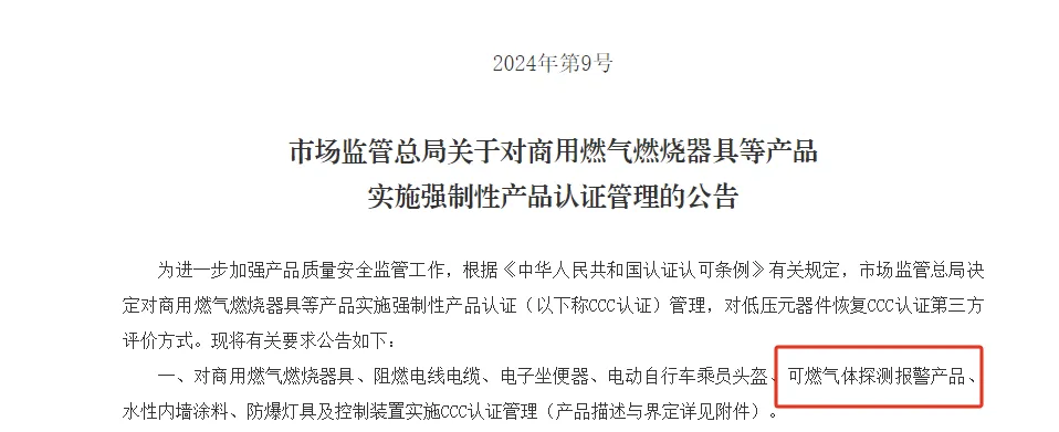 自2025年7月1日起,可燃气体探测报警仪需要CCC认证才能流通。
