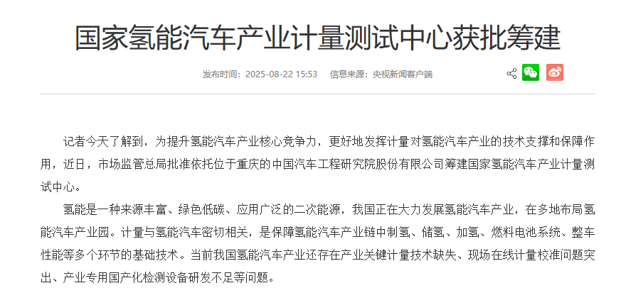 国家氢能汽车产业计量测试中心获批筹建